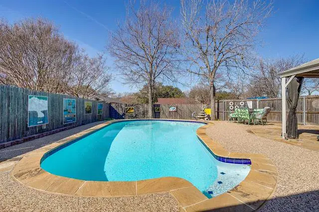 Recent improvements provide peace of mind, including an updated electrical panel (2025), HVAC system replaced in 2023, updated flooring, and a remodeled bathroom. Step outside to your private backyard retreat featuring a wonderful in-ground play pool resurfaced in 2025, plus a charming outdoor pergola that creates a true outdoor living space. An open patio offers additional entertaining space and can easily be enclosed for winter enjoyment. The rear-entry garage enhances curb appeal and includes extra parking space for a boat or small RV. Conveniently located close to an elementary school, this home combines comfort, functionality, and a prime location. Don’t miss this exceptional opportunity in Southwest Fort Worth!