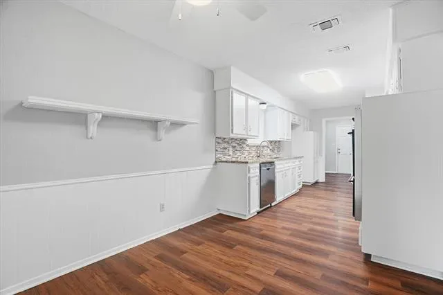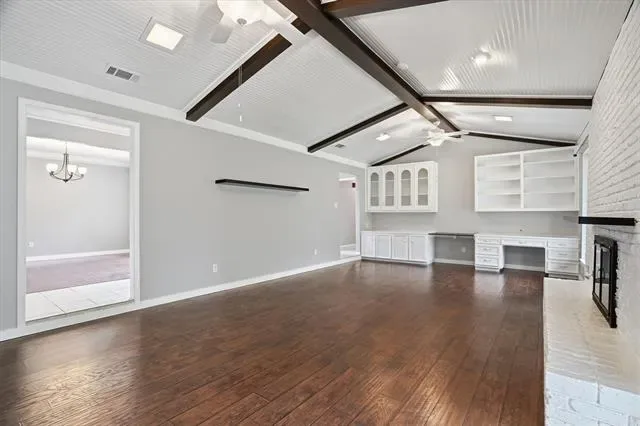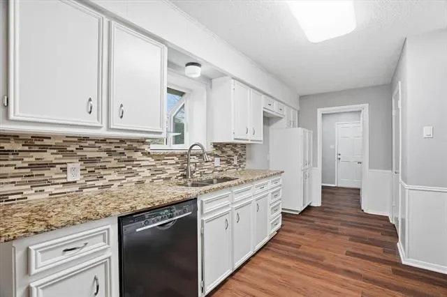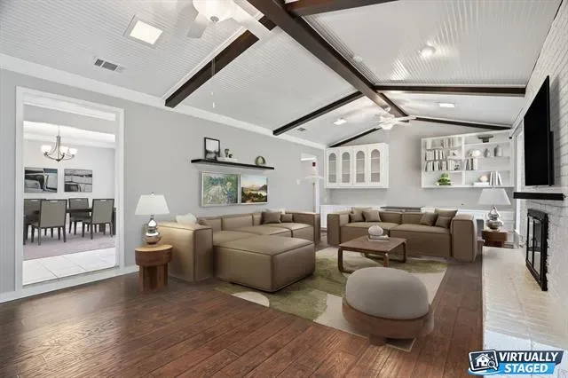 Beautifully updated 3-bedroom, 2-bath home with a 2-car garage in the established Wedgwood neighborhood. This inviting home blends charm and functionality with granite countertops, stylish tile backsplashes, modern fixtures, vaulted ceilings, and warm wood laminate flooring. The spacious living area features a cozy gas fireplace and a striking wall of built-ins that adds both character and practical storage.