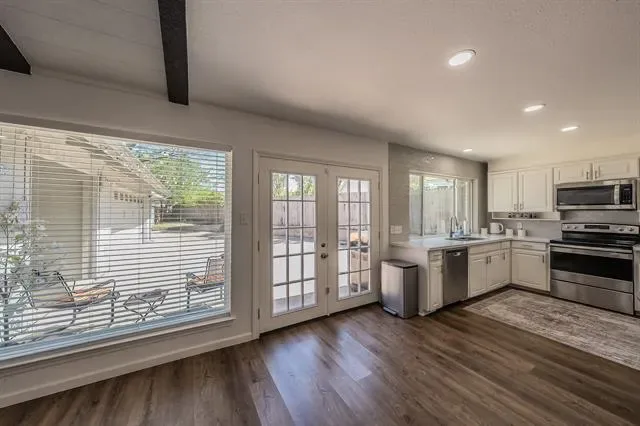 This beautifully maintained home offers comfort, style, and functionality in a desirable Fort Worth location. Designed with an inviting open-concept layout, the spacious living area is filled with natural light and provides the perfect setting for both everyday living and entertaining, seamlessly connecting to the dining area and well-appointed kitchen with ample cabinetry and generous counter space. The private primary suite serves as a relaxing retreat with a spacious bedroom, an ensuite bathroom, and a large walk-in closet. Additional bedrooms are well-sized and thoughtfully positioned to offer flexibility for guests or everyday needs. Neutral tones and quality finishes throughout create a warm, move-in-ready atmosphere which includes new windows and gutters. Situated on an incredible elevated lot, this property offers added privacy and great views, along with an electric gate for enhanced security and peace of mind. The home also features 4-car covered parking, providing ample space that could easily double as a workshop, home gym, or hobby area. The low-maintenance backyard includes a great outdoor entertaining space with room to build your dream outdoor kitchen. Conveniently located near shopping, dining, and major highways, this home provides easy access to all that Fort Worth has to offer while maintaining a peaceful neighborhood feel. Whether you’re a first-time buyer, downsizing, or investing, this property presents a fantastic opportunity with comfort, convenience, and value.