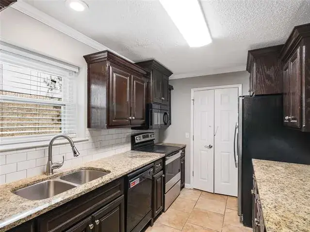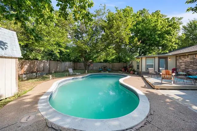 This updated home in the Wedgewood Addition is conveniently located near shopping, dining, and walking distance to elementary school. The layout is ideal for families, guests, or multi-generational living, featuring two master suites, spacious secondary bedrooms, and two living areas. The modern kitchen with granite countertops and updated cabinetry flows into the dining and living areas. The enclosed patio provides a flexible second living space and overlooks the backyard and sparkling in-ground pool. Perfect for entertaining, relaxing, or enjoying warm Texas evenings. Foundation recently repaired with transferable warranty.