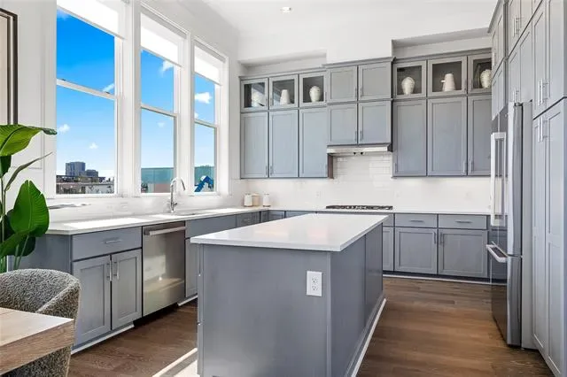 NOW OFFERING 3% FLEX CASH FOR CLOSINGS BY MAY 31ST! Welcome to Foundry Row, an exclusive collection of 8 townhomes in Fort Worth’s vibrant West 7th District. This elegantly designed END UNIT features an open floorplan with high-end finishes ideal for entertaining. The main level boasts soaring 12-foot ceilings and a 10-foot sliding glass door that seamlessly extends your living space outdoors. The gourmet kitchen is equipped with Bosch stainless steel appliances, quartz countertops, a stylish tile backsplash, and soft-close cabinetry. The serene primary suite includes a large drop-in tub, walk-in shower, and extra spacious closet. Throughout the home, upgraded engineered hardwoods enhance the sophisticated ambiance, while the private rooftop deck offers a quiet retreat with sweeping views of Downtown Fort Worth. Located just minutes from the lively West 7th District, you’ll enjoy convenient access to dining, shopping, museums, entertainment, and more. Experience the perfect blend of luxury and sustainability in this exceptional home. PLEASE GO TO MODEL HOME FOR ALL OPEN HOUSES – 201 CARROLL ST.