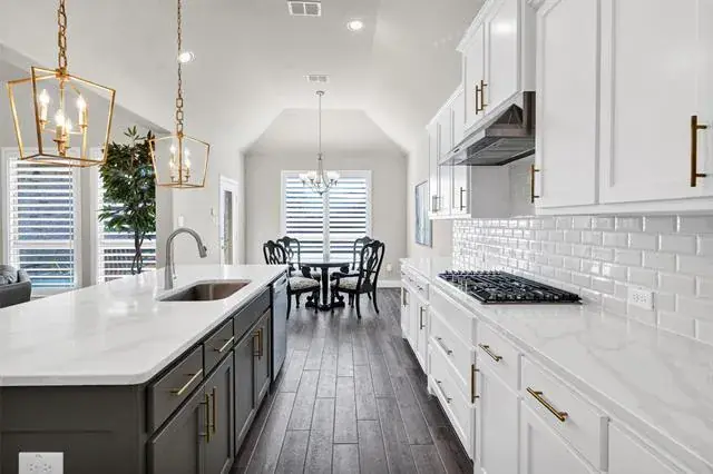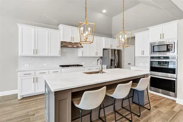 ONE STORY…MODEL HOME PERFECTION IN A PRIME SETTING! This stunning 3 bedroom, 2 bath home shows like a designer model and offers a seamless blend of luxury, comfort, and functionality. Soaring high ceilings and an open concept layout create a bright and inviting atmosphere. The chef inspired kitchen, featuring upgraded countertops, an expansive island bar, abundant custom cabinetry, and a gas cooktop, perfect for hosting gatherings or enjoying a quiet evening at home. Kitchen overlooks the warm and cozy living room with fireplace. The private primary suite is a true retreat, boasting a spa like bathroom with dual sinks, a gigantic walk in shower with bench, and an exceptionally large walk in closet. Secondary bedrooms are thoughtfully placed on a separate wing of the home, providing privacy and flexibilty for family, guests or a home office. Situated on a fully fenced yard while being conveniently located. Drone views highlight a tranquil pond with water features, adding to the neighborhoods scenic appeal. Enjoy easy access to top rated schools, major highways for an easy commute, shopping, dining, grocery stores like Kroger, and everyday conveniences. This is a rare opportunity to own a home that combines model quality finishes with a serene setting and and unbeatable loaction. Truly move in ready and unforgettable.