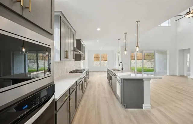 NEW CONSTRUCTION: Beautiful two-story home available at Wellington in Fort Worth. The Ferris Plan, spanning 3,875 sf. 5 BR + 4BA +2 Powder rooms. Soaring Ceiling at Entry + Open floorplan layout perfect for entertaining and creating a connected home environment + High-end kitchen with premium finishes and upgraded stainless steel appliances + Expansive gathering room bathed in natural sunlight + Inviting Game Room perfect for additional entertaining + Owner’s suite bath with a luxurious walk-in shower + Sleek LVP Flooring + Stylish quartz countertops. A wonderful home for a growing family or for those who enjoy entertaining. Available for move-in May 2026!