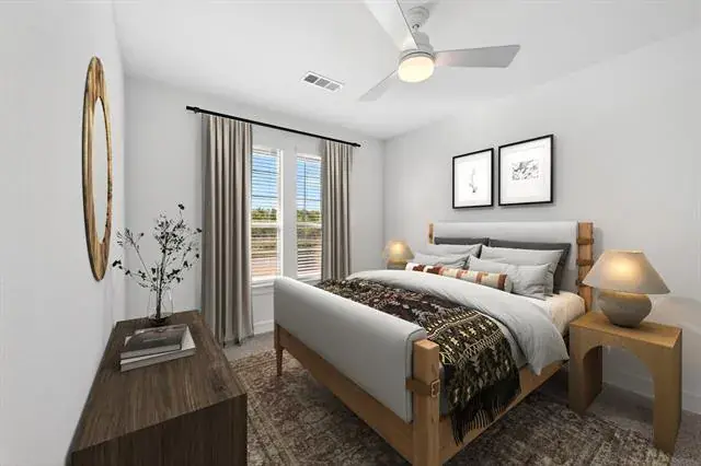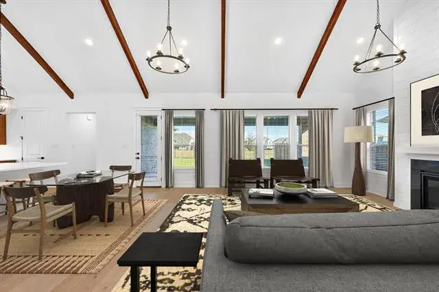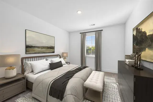 Located in Northwest ISD! This stunning 2-story home provides a comfortable open floorplan with an Extra Suite, ideal for extended stay guests. A private home office followed by an intimate dining room is great for entertaining. The kitchen features a spacious island and overlooks the well-lit great room. A cozy dining area allows access to the covered patio, great for outdoor living. In from the garage, a HovHall with valet and laundry room keep your home tidy. The primary suite with private bath and spacious walk-in closet. A versatile loft, 3 additional bedrooms, and an entertaining media room allow for comfort for all. Located in Wellington, the neighborhood will offer amazing amenities including a resort style pool, multi-use amenity center, playground, and walking trails.