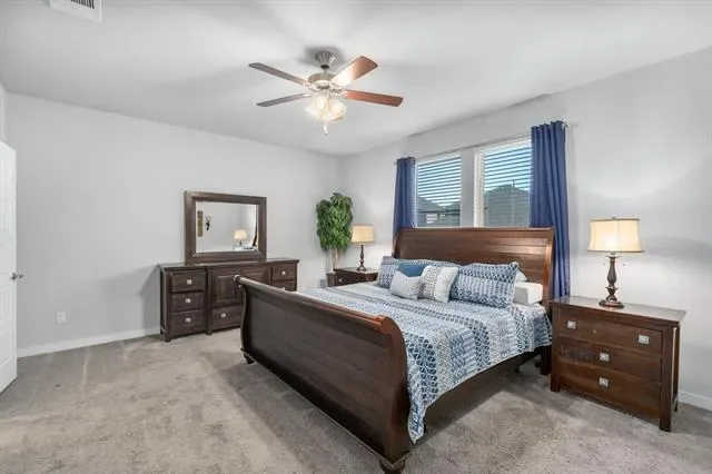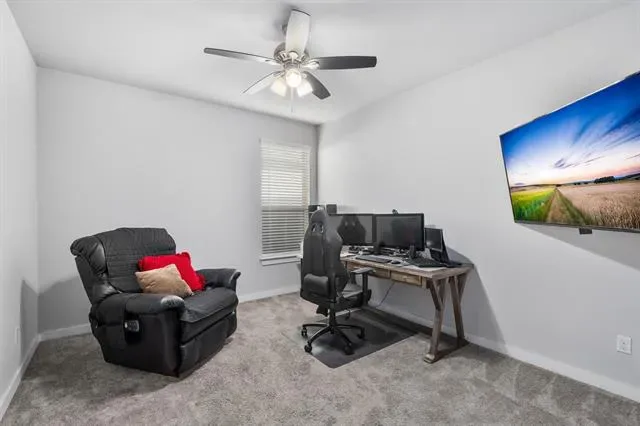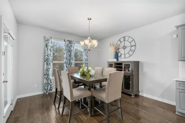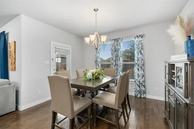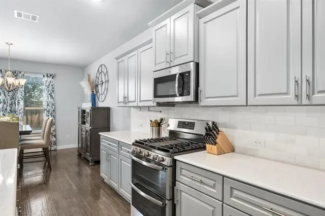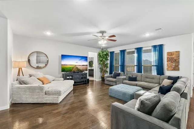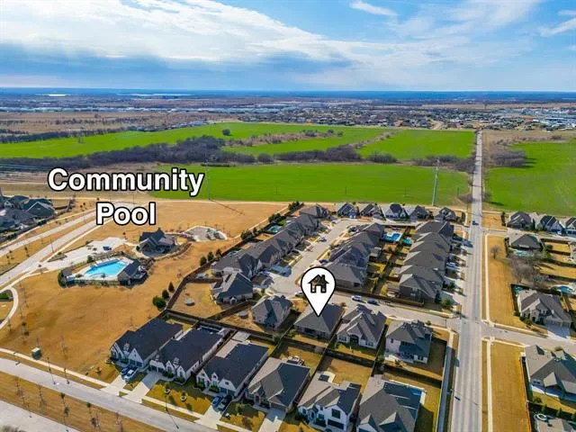 Designed for both comfort and connection, this thoughtfully laid-out single-story home delivers space where it matters most. With five generously sized rooms, one easily adapting to a home office, media space, or playroom, the layout flexes effortlessly to meet your needs. High ceilings and a wide entry create an immediate sense of openness, while walls of windows invite natural light throughout the heart of the home. At the center, the kitchen anchors daily life and gatherings alike, offering sleek quartz surfaces, an expansive island for casual seating, abundant storage, and a gas cooktop that makes meal prep a breeze. The adjoining living area keeps everyone connected, whether you’re hosting friends or enjoying a quiet evening in. A large utility room paired with a convenient drop zone adds function without sacrificing style. Tucked away for privacy, the primary retreat feels like a true escape, complete with a oversized walk-in shower, dual vanities, and a dedicated space perfect for getting ready with ease. Secondary rooms are well-proportioned and thoughtfully separated, providing comfort for family and guests alike. Step outside to a spacious backyard ready for outdoor fun, gardening, or relaxing under the Texas sky, with a hot tub included with an acceptable offer. Located in the vibrant Wellington community, residents enjoy access to a resort-style pool, scenic trails, parks, and playgrounds, all just moments from top-rated Northwest ISD schools. With quick access to major highways and nearby shopping, dining, and entertainment, this home offers the perfect blend of everyday ease and neighborhood charm.