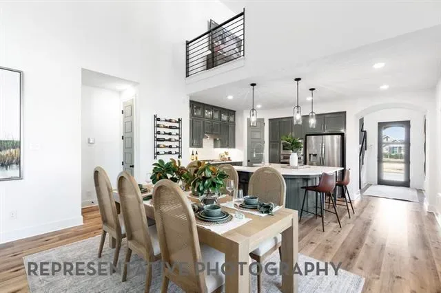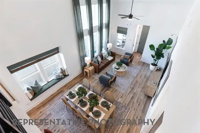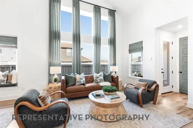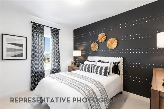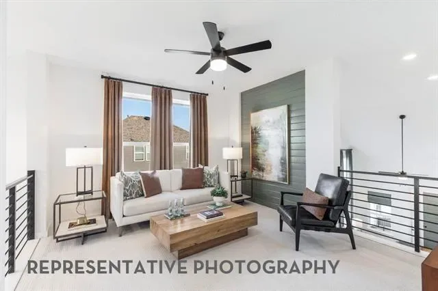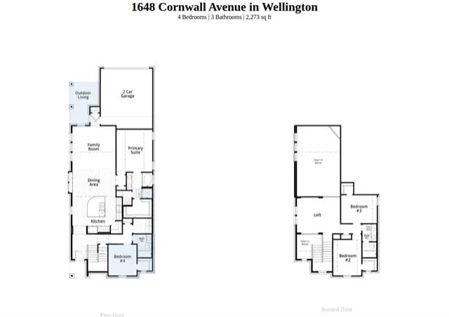 This charming two-story floor plan is designed for both comfort and functionality. The main floor features an open-concept kitchen with a central island, seamlessly connecting to the dining area and living room, which leads to a cozy patio for outdoor enjoyment. The primary suite offers a luxurious retreat with an ensuite bathroom. A secondary bedroom is located at the front of the home. A convenient full bathroom is also on this level. The rear-entry two-car garage offers ample storage and parking. Upstairs, you’ll find a versatile loft area, perfect for additional living space or a playroom, along with bedrooms three & four, which share access to a full bathroom. The open-to-below design enhances the sense of space and connection throughout the home, making it ideal for modern living.