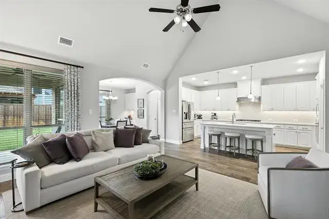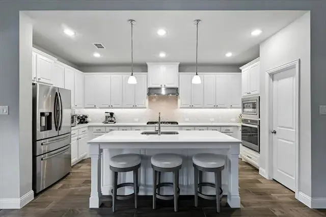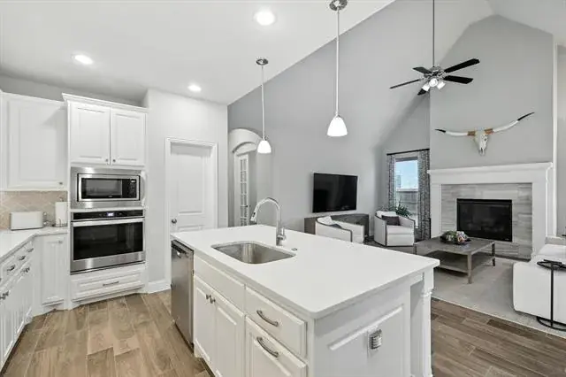 Welcome to this turnkey, single story Wellington home built by American Legend homes. Get the benefits of the long list of upgrades, the mature yard and move- in ready convenience without the new construction wait. This low maintenance luxury home has a dedicated office space for homework, or remote work from home needs. The spacious kitchen is a true showstopper—featuring a stunning center island, sleek countertops, and top-quality appliances that make cooking and entertaining a joy. Enjoy casual meals in the light-filled breakfast area or gather in the eat-in kitchen for larger occasions. The open layout flows effortlessly from kitchen to living spaces, creating a warm and welcoming atmosphere. This home combines comfort, style, and functionality—ready for its next owner to move right in and make it their own. High ceilings throughout, 4 large bedrooms AND an office all on one level. Immaculately maintained home that is pristine and ready for new owners. Feeds into Northwest ISD and the award winning Eaton High School. The backyard is large enough for a pool or play space. Furniture is available for purchase outside of the offer price. All decorative curtains and rods convey with the home. The community amenities feature scenic ponds, walking trails, resort style pool, BBQs and a clubhouse. With no PID, MUD and unbeatable proximity to Alliance Town Center and DFW shopping, this home truly has it all. Smart home features and low utilities round out some of the fabulous things this home offers.