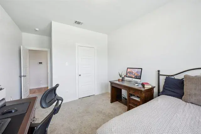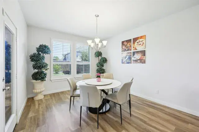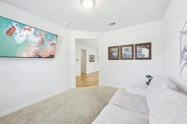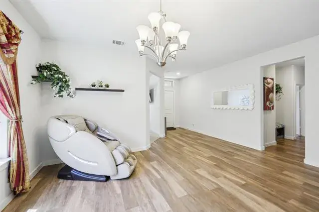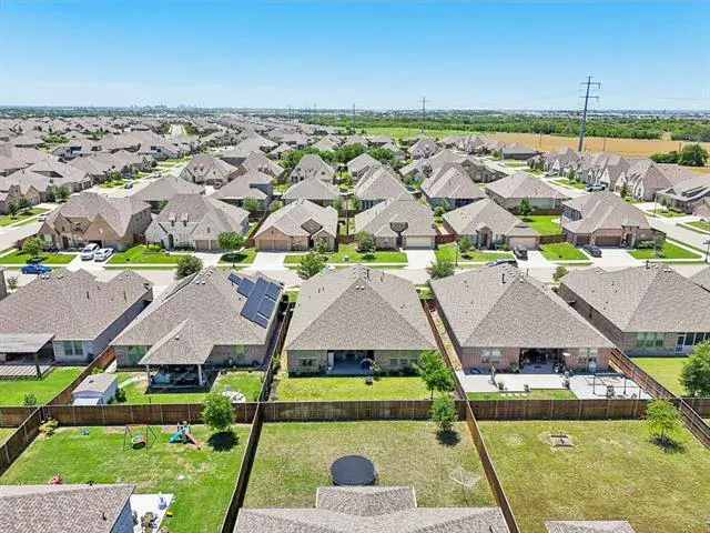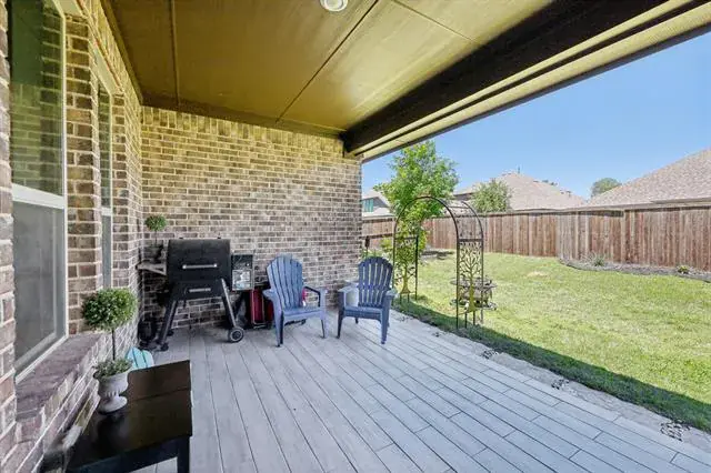 Welcome to this beautifully maintained 4-bedroom, 2.5-bath home in the highly sought-after Wellington community, located within acclaimed Northwest ISD. This expansive single-story layout offers flexibility and function with a formal front living area that can easily serve as a home office, flex space, or even an additional bedroom.Enjoy entertaining in the formal dining room and relax in the large open living area featuring a cozy fireplace and plenty of natural light from the oversized windows. The stunning kitchen boasts white cabinetry, quartz countertops, a gas range, and comes complete with both the kitchen and garage refrigerators.The spacious and private primary suite includes a large ensuite bath, while the secondary bedrooms offer plenty of room for everyone. Additional upgrades include gutters added in 2024 and the washer and dryer are also included.