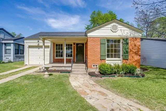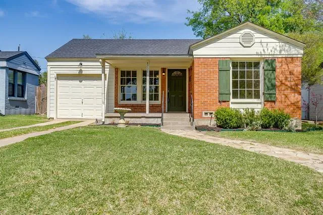 Adorable brick cottage next to the Arlington Heights Baseball fields. This charming home has been updated, but maintains all its original character. The wood floors have been refinished and there is a covered front porch. The 2 bedrooms flank the hall bath. The small, but efficient kitchen has been updated with new cabinets, countertop and appliances. There are new wood French doors that open from the dining room to the oversized back patio. The out-building is a true man-cave. It was insulated and has room for your flatscreen TV, sofa and game table. The wall unit keeps it cool even in hot Texas nights. This would make a perfect office, home gym or even homeschool room. The 1-car attached garage has an additional washer and dryer connection as well as room for 1 car and all your tools. Finally, there is an additional 2-car carport in the back with alley access. Come enjoy life in this classic Fort Worth neighborhood that is convenient to everything. Buyer and Buyer’s agent are responsible for confirming room sizes and schools.