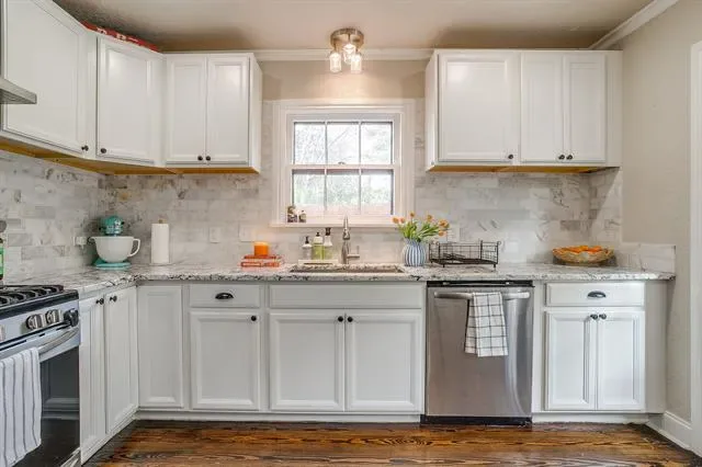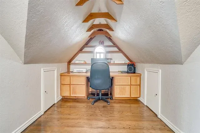 Tucked in one of Fort Worth’s most beloved neighborhoods, this classic brick Tudor on Lovell Avenue is a rare find delivering timeless architectural character and a fully finished garage apartment. Arched doorways, rich hardwood floors, custom built-ins, and a covered front porch that makes a lasting first impression. The main home features two spacious bedrooms and a full bath on the main level, with an additional loft, bonus room, and full bath upstairs offering flexible space for a home office, guest suite, or studio. Not to mention the extra storage. The kitchen is well-appointed with a gas cooktop, generous counter space, and exceptional storage, flowing into a full size laundry and mudroom that leads directly out to the large back deck, perfect for entertaining. Parking and storage further set this property apart in a neighborhood where both are a premium! A covered two-car carport plus a one car garage with substantial storage. The approximately 350 square feet garage apartment (not included in square footage) offers excellent potential for rental income, multigenerational living, or a private guest retreat including a full kitchen, bathroom, living and bedroom space.