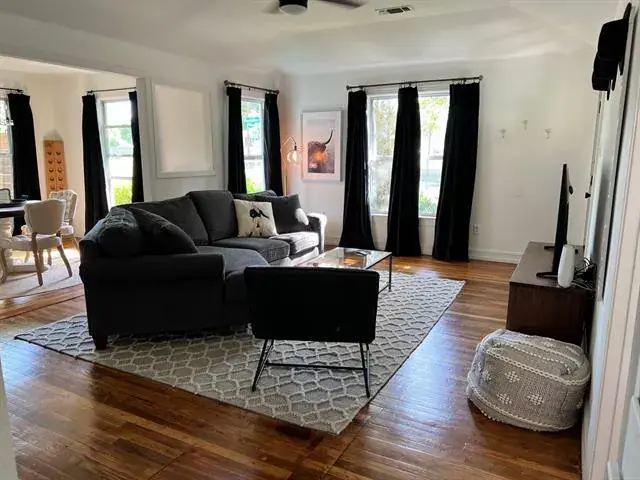 A rare find in Oakhurst THREE-bedroom TWO-bath under 350k! Tucked away in the highly sought-after neighborhood of Oakhurst, this 1940’s Bungalow pairs modern conveniences with historic charm. The open concept plan allows rooms to flow seamlessly, with windows around every corner, you’ll love the bright natural light that radiates throughout. Both bathrooms have been fully remodeled. Original wood flooring has been recently refinished. Enjoy one of two oversized patios in the courtyard. The garage features an unfinished ADU rental opportunity for additional income. Roof installed in 2019, full foundation repairs completed in 2021, exterior paint completed in 2026, both front and back doors newly installed for energy efficiency. Cedar fence installed in 2022. Both front and backyards are fully fenced.