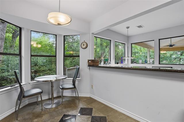 Nestled among a canopy of mature trees, this one-of-a-kind home offers privacy, charm, and stunning natural surroundings. The main level is filled with expansive windows that beautifully frame the scenery, bringing in abundant natural light and creating a seamless connection to the outdoors. Architecturally distinctive and unlike any other home in the area, this property showcases unique design elements paired with thoughtful functionality. Storage throughout the home is exceptional, and the property has been meticulously maintained. The spacious wraparound patio provide the perfect setting for large gatherings or a serene outdoor retreat where the only sounds you’ll hear are birds in the trees. Parking is plentiful with a large carport that easily accommodates two vehicles in addition to the attached two-car garage. Inside, the flexible layout features two living areas, one on each level, offering comfort and privacy for everyone. The kitchen is equipped with a high-end induction oven for efficient and enjoyable cooking, and the refrigerator, washer, and dryer will convey with the home. The primary suite is a true retreat, complete with a cozy wood-burning fireplace and a spa-like bathroom featuring a round jetted tub, separate shower, and beautiful stained glass accents. Additional highlights include unique ceiling details that enhance the home’s character, a stained concrete floor made to look like wood, tankless water heater, and newer heating and air systems. The secondary bedrooms and a full bathroom are located on the base level, where a portion of the exterior wall is underground helping maintain cooler temperatures year round and adding to the home’s energy efficiency and comfort.