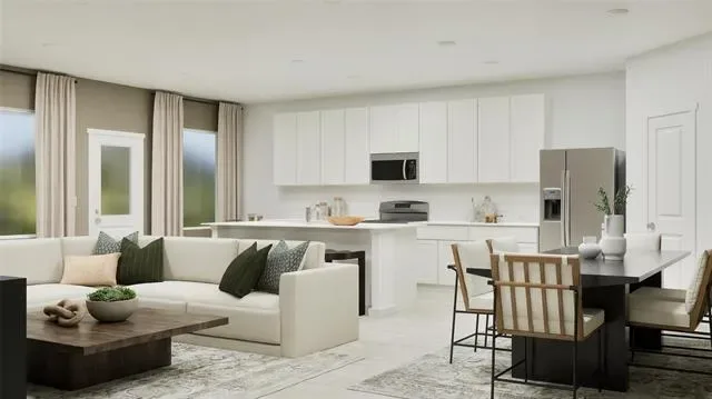 This single-story home shares an open layout between the kitchen, nook and family room for easy entertaining, along with access to the covered patio for year-round outdoor lounging. A luxe owner''s suite is in a rear of the home and comes complete with an en-suite bathroom and walk-in closet. There are three secondary bedrooms near the front of the home, ideal for household members and overnight guests, as well as a versatile flex space that can transform to meet the homeowner’s needs.