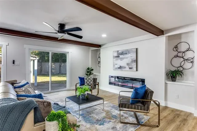 ****PRICE IMPROVEMENT**** Bright, welcoming, and move-in ready—this beautifully updated home is just minutes from TCU, parks, dining, and all the best of Fort Worth. Enjoy open-concept living with oversized windows that flood the space with natural light, luxury vinyl floors, and charming wood beams for warmth and character. The living room features a striking electric fireplace, creating a cozy spot for relaxing or entertaining. The chef’s kitchen is a standout with quartz countertops, a contemporary backsplash, stainless steel appliances—including a gas range with designer hood and a double oven—plus a spacious island and huge walk-in pantry for storage and organization. The thoughtful layout seamlessly connects the kitchen, dining, and living areas, making everyday life and gatherings easy. Modern fixtures and designer lighting throughout add style and comfort. Outside, unwind in the privacy-fenced backyard shaded by mature trees—ideal for pets, family, or quiet weekends. Car enthusiasts and hobbyists will love the rare 4-space covered carport plus a detached 2-car garage, offering plenty of protected parking. An unfinished 375 sqft bonus space in the backyard is ready for your ideas—create a guest suite, home office, rental, or multi-gen living. This unique opportunity means room to grow and add value! Located in a friendly, convenient neighborhood close to everything. Don’t miss out on this rare opportunity—schedule your visit today and see how this Fort Worth gem can be your next home! BRING ALL OFFERS
