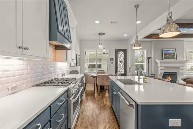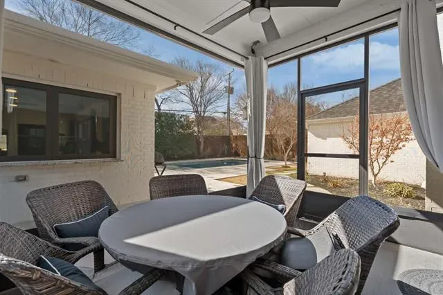 Located just blocks from TCU in the heart of Westcliff, this exceptional Bannister Homes custom build offers four bedrooms, three full bathrooms, two half baths, and a two-car garage with ample storage, encompassing approximately 3,500 square feet of total AC living space including a beautifully appointed pool house—delivering a refined blend of elevated design and resort-style living. Built in 2019, the home also features a private study, formal dining, and an upstairs game room. Inside, curated upgrades and intentional details define the space. Statement iron front and rear doors set the tone, while custom built-ins enhance the study and dining areas. A framed 500-bottle Wine Enthusiast display creates a focal point upon entry. The laundry room has been redesigned with a sink, granite countertops, and added cabinetry. The primary suite offers a private retreat with an oversized walk-in shower, elevated tile selections, and a custom closet system. A screened-in patio extends the living space outdoors, creating a comfortable setting for year-round enjoyment. Beyond, the backyard transforms into a true private oasis. Designed by Extreme Outdoors, the resort-style saltwater pool showcases an expansive sun shelf and illuminated deck jets—ideal for entertaining or relaxing in a setting that feels like a private resort. The approximately 500-square-foot pool house features glass accordion doors and windows, seamlessly blending indoor and outdoor living. Complete with a DCS grill and vent hood, refrigerator, bar seating, TV, surround sound, a bathroom plumbed for a future shower, storage, and an outdoor shower, the space is designed for effortless hosting. Additional highlights include integrated Klipsch surround sound, a full Ring security system, a whole-home Generac generator, and professionally designed landscaping that enhances privacy and curb appeal. A rare opportunity to own a fully customized luxury retreat just moments from TCU.