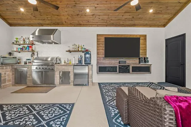 Covered Patio/Porch, Rain Gutters, Lighting, Outdoor Kitchen, Outdoor Living Center, Private Yard