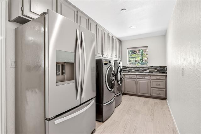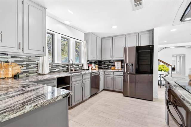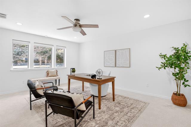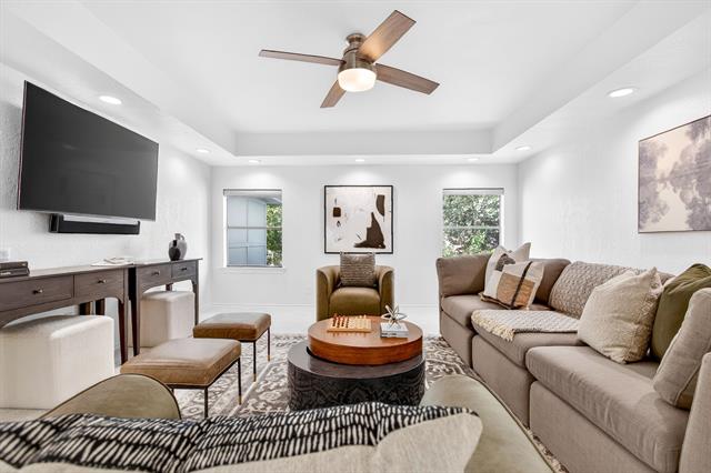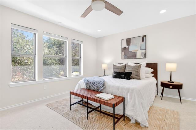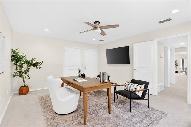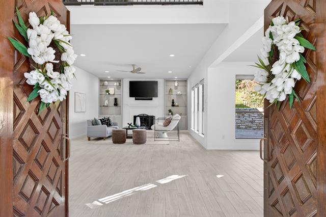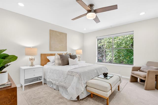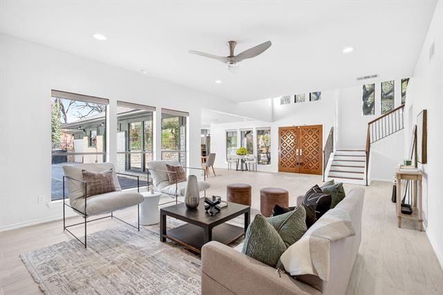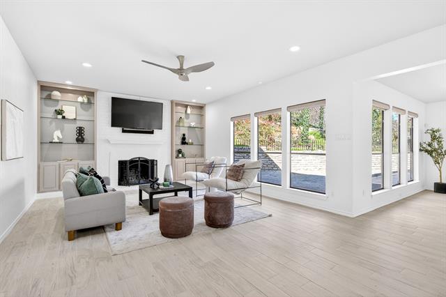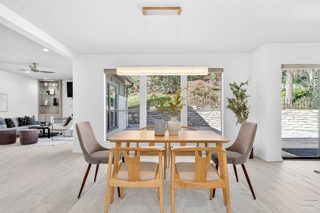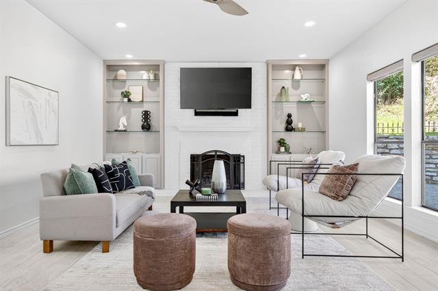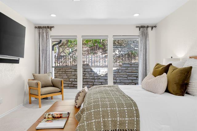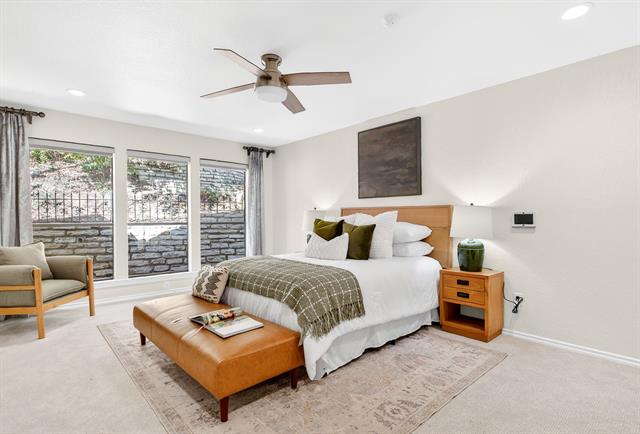 Incredible opportunity feeding Overton Park Elementary in one of Westcliff’s most prestigious, walkable locations. Seconds to the trails along Foster Park, connecting you to Trinity River Trail and beyond, this soft contemporary home sits below gorgeous, towering trees on a wide lot with circular drive and gated side-facing garage. Curb appeal is enhanced by well maintained landscaping, fresh exterior paint, a new roof, and handsome double front doors. Pull up to peek views through the whole home to the backyard. Step inside to an intuitively flowing interior bathed in natural light and soft white walls. Whole-house interior paint and brand new carpet keep things fresh. Other recent improvements: lighting, including recessed lights throughout and custom fans, and custom window treatments. Bathrooms and kitchen were remodeled by previous owners. New 23 SEER HVAC, extra blown-in insulation, a totally overhauled panel and electric service, and new water heater round out the practical upgrades. Dramatic terrain in the backyard lends to a low-maintenance, high-privacy lifestyle; you feel like you’re in a treehouse in nearly every room, with peaceful, verdant views through the abundant windows. Still, entertaining comes easy thanks to the generous open concept spaces and the big courtyard patio beyond the breakfast area.