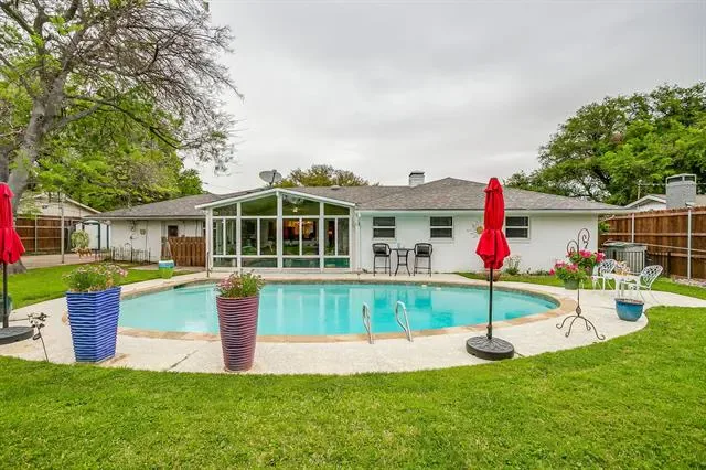 The huge backyard is designed for Texas family living, featuring a private swimming pool, large grassy yard for kids and pets, and plenty of space for outdoor entertaining, birthday parties, and weekend gatherings. Bring your athletes, there is even a sports court area in the backyard!