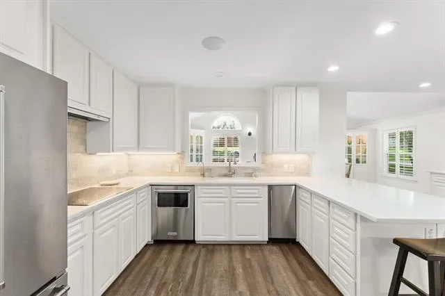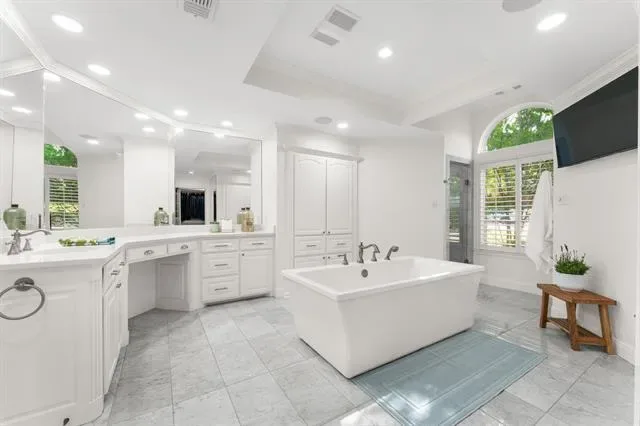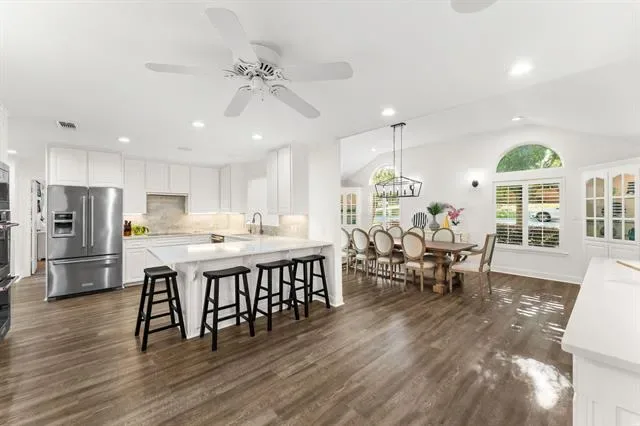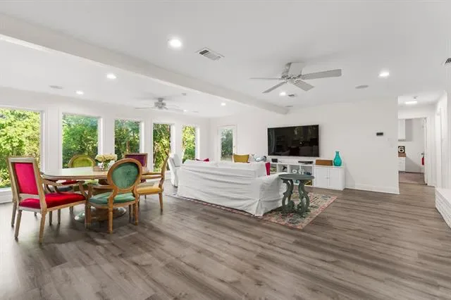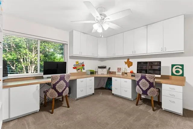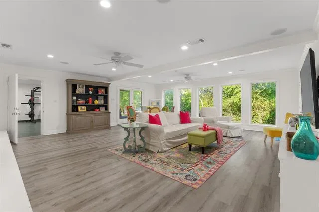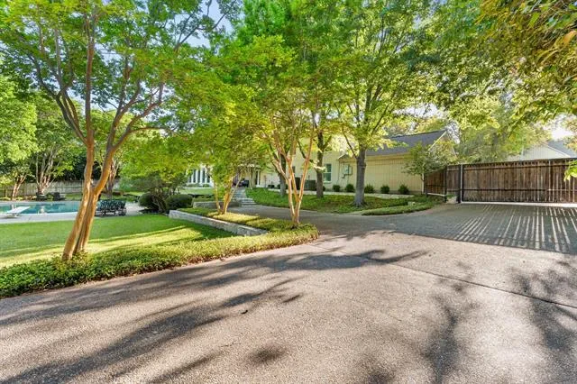 Set on an incredible .75-acre wooded lot, 4217 Hildring Drive East offers an exceptional blend of privacy, scale, and refined livability. Spanning 6,438 square feet, this 5-bedroom, 5-bathroom residence is beautifully renovated and thoughtfully designed with the majority of living on the first level – delivering both convenience and elegance for everyday living and entertaining. From the moment you enter, soaring ceilings and expansive sight lines create a sense of grandeur, while capturing treetop views and natural light. The recently updated kitchen is a true centerpiece—featuring newer appliances, generous prep space, and a seamless connection to a well-appointed butler’s pantry and dining room ideal for hosting at any scale. Designed for today’s lifestyle, the home includes a private office, game room, craft room and gym, offering flexibility for work, wellness, and recreation—all under one roof. Each bedroom is generously sized, providing comfort and privacy for family and guests alike. Outdoors, the property transforms into a private retreat. Mature trees frame the grounds, while a resort-style pool, inviting fire pit, and multiple gathering areas create an atmosphere perfect for both intimate evenings and large-scale entertaining. A rare and highly functional feature, the home offers two separate entrances, allowing for discreet access—ideal for a nanny suite, multigenerational living, teen quarters, or a private home office setup. A gated rear entry with additional parking further enhances both security and convenience. This is a home that lives beautifully—where thoughtful design meets serene surroundings—offering a rare opportunity to enjoy space and privacy in the heart of Fort Worth. Zoned Overton Park Elementary.