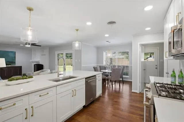 Thoughtful updates and a versatile layout come together in this well-appointed home, zoned to the highly sought-after Overton Park Elementary. Multiple living areas allow the floor plan to function as a 4 bedroom, 3 bath home, or as a 3 bedroom with an additional living space, office, or media room, offering flexibility to fit a variety of needs. The recently updated kitchen features a clean, understated design with ample prep space and easy flow into the surrounding living and dining areas, making it well suited for both everyday living and entertaining. Throughout the home, natural light, hardwood floors, and consistent finishes create a cohesive feel. All bathrooms have been updated, and the HVAC system was replaced within the last year. The backyard is designed for both daily enjoyment and entertaining, with a large pool, covered patio, and built-in grill area, while still offering plenty of usable yard space, covered parking, and additional storage. Convenient access to The Shops at Clearfork, Foster Park, and a wide range of Fort Worth shopping, dining, and entertainment further adds to the appeal. With a flexible layout, meaningful updates, and inviting outdoor spaces, this home offers a thoughtful balance of function, quality, and location.