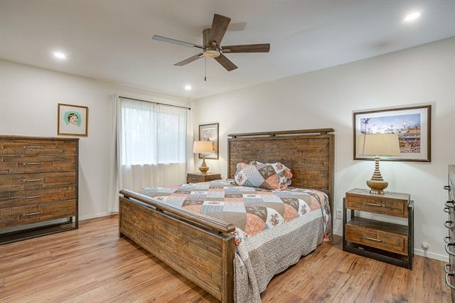 Beautiful sprawling updated 3 bed 2 bath brick ranch-style home on corner lot of cal-de-sac! Perfect family home featuring a large backyard with privacy fencing and large magnolia tree! Step inside onto the stunning hardwood floors in main living areas , primary bedroom and hallways ! Large open living area with multiple windows for tons of natural light . Or relax in the large den flex area with wood burning fireplace while looking out the sliding glass back doors to the your backyard . Fabulous kitchen open to den flex area with eat-in counter and additional breakfast nook area . Kitchen is a chefs dream with stainless steel appliances. Featuring a 6 burner gas cooktop with grill, pot filler, ventahood , dual ovens , dishwasher and pantry! Additional third large flex room with tile flooring for game-room or home office! Primary bedroom features hardwood floors and en-suite bathroom with double sinks, glass shower with rain shower and handheld sprayer and a walk in closet. All 3 bedrooms currently accommodating king size beds in each.Separate Walk in full size laundry-utility room with additional closet , built cabinets with countertop .This property has all the charm and sprawling space and backyard of the ranch-style home with all the modern updates, finishes and amenities! NEW Roof and energy efficient windows installed in 2024, New hot water heater and HVAC in 2022! All of this just waiting for you to call home!