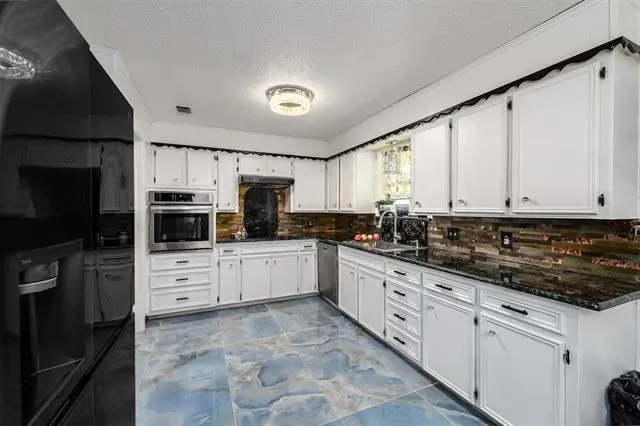 PRICE IMPROVEMENT! Bring us an OFFER! Welcome to this charming 3 bed 2 bath brick home, located right off South Dr in Fort Worth, minutes from TCU campus and Hulen between Chisholm Trail and 820. Recently renovated with granite flooring, counter tops and hearth. The home is situated on a generous interior lot with mature trees and tasteful landscaping lending shade and beauty. As you walk into the foyer, the open concept living to the left leads you past the fireplace into the kitchen, the windows and sliding glass doors provide plenty of natural light. The oversized primary bedroom is to the right, with his and her walk-in closets, double vanity, garden tub and shower. Matching granite throughout the entire home. A second split bedroom is located in the front with additional full bath in hallway. Also features a walk in closet. Large eat-in kitchen, with granite countertops and ample counter space with built-in cabinets. The wood burning fireplace with granite hearth is great for relaxing or entertaining with family and friends. The fenced backyard has a large covered patio. House is meticulously cared for. New upgrades include two added media walls, fresh paint, new floors, Fresh Paint, Large Granite Breakfast Table included. Large Pantry, New Barn Door, new water heater. Over 5k worth of Pecan Wood, 3 Seasons.