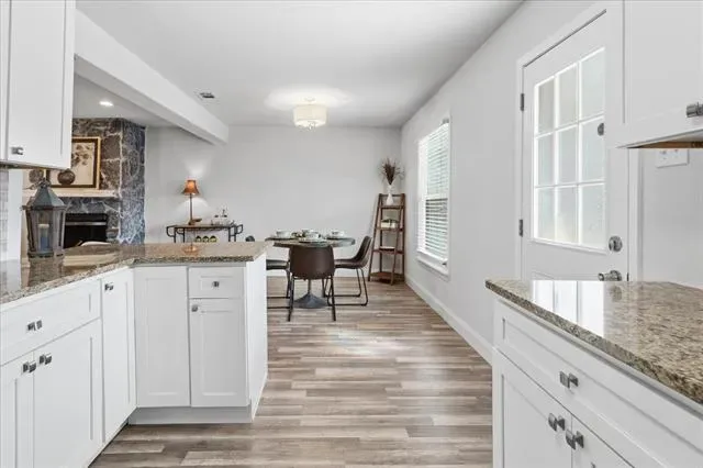 Welcome Home to this charming Mid-Century Modern home in the heart of the Westcliff Subdivision, one of Fort Worth’s most coveted neighborhoods! Enjoy the view from the welcoming entrance with a cozy covered front porch. Step into this completely renovated, 3 bedroom and 2 full bath, open-concept home with a spacious living area, flooded with natural light, a stone fireplace, a dining area with views of the huge backyard and LVP floors flowing throughout. Cook in style in this modern kitchen, equipped with gorgeous granite countertops, all stainless-steel appliances, and plenty of beautiful white cabinets! Then retreat into the spacious primary bedroom complete with an en-suite bathroom with stone tiled shower and stunning corner windows! With two additional bedrooms and a second large new bathroom, there’s plenty of space for family and guests! The huge backyard has tons of space, a covered porch, a new extra-large concrete deck with more room for a pool, perfect for entertaining! Plenty of updates: HVAC, energy efficient windows, water heater, flooring, counters, bathrooms and foundation with transferable warranty! Conveniently located just steps from Foster Park and Overton Park connecting to the Trinity Trails for easy walks, runs, and cycling, and only 1.5 miles from TCU! Plus easy access to local shops and dining! Live your dream life in this stunning home!