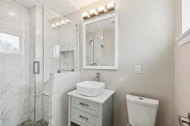 Welcome home to this charming white brick five-bedroom retreat in Western Hills, where timeless character meets thoughtful modern updates and everyday comfort. Ask about seller finance 40 yr loan options! An inviting, elongated front porch, perfect for rocking chairs, morning coffee, and quiet evenings, overlooks mature shade trees and sets the tone for the warmth you’ll feel inside. A convenient front-facing two-car garage adds to the home’s effortless livability. Step through the door into a light-filled living room that truly sparkles, featuring rich hardwood floors, fresh neutral paint, and an airy, welcoming ambiance. Natural light flows beautifully throughout, creating a bright and uplifting atmosphere in every space. The oversized dining room is made for gathering, whether hosting holiday celebrations or casual dinners with friends and offers sliding doors that open seamlessly to the backyard patio for easy indoor-outdoor entertaining. Just beyond, the stunning kitchen serves as the heart of the home, showcasing stone countertops, a designer backsplash, vent hood, crisp white cabinetry, farmhouse sink, and a generous breakfast bar that invites conversation over morning coffee or evening meals. The thoughtful layout provides three bedrooms on the main level, including a peaceful primary retreat. The fully renovated en-suite bath offers a spa-like experience with a modern vessel sink, framed mirror, and sleek glass-enclosed shower, a serene space to unwind at the end of the day. Upstairs, you’ll discover a flexible private suite ideal for guests or multi-generational living, complete with its own bedroom, full bath, and spacious game room that could easily serve as a fifth bedroom, media room, or home office. Step outside and fall in love with your very own backyard oasis. A large covered patio overlooks the sparkling pool and spa, creating the perfect setting for relaxing evenings, weekend barbecues, and memorable summer gatherings.
