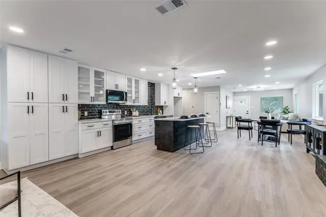 Completely renovated and move-in ready, this beautifully updated home offers 1,700 sq ft of modern living space with 3 bedrooms and 2 full bathrooms. Step inside to an open-concept layout filled with natural light and a seamless flow between the living, dining, and kitchen areas, perfect for everyday living and entertaining. The fully remodeled kitchen features brand-new cabinetry, quartz countertops, stainless steel appliances, a large island, and a designer backsplash, creating a sleek and contemporary feel. Both bathrooms have been thoughtfully updated with modern finishes, stylish vanities, and custom tile work, including a spacious walk-in shower. This home has been upgraded from top to bottom with new electrical and plumbing, new HVAC system and ductwork, new windows, new roof, new siding, and fresh interior and exterior paint. Additional improvements include new fencing and updated finishes throughout. The exterior offers great curb appeal with a modern design and a spacious yard ideal for relaxing or entertaining. Conveniently located in Fort Worth with easy access to major roads, shopping, and dining, this property is perfect for homeowners or investors seeking a turnkey opportunity with all major systems already updated.