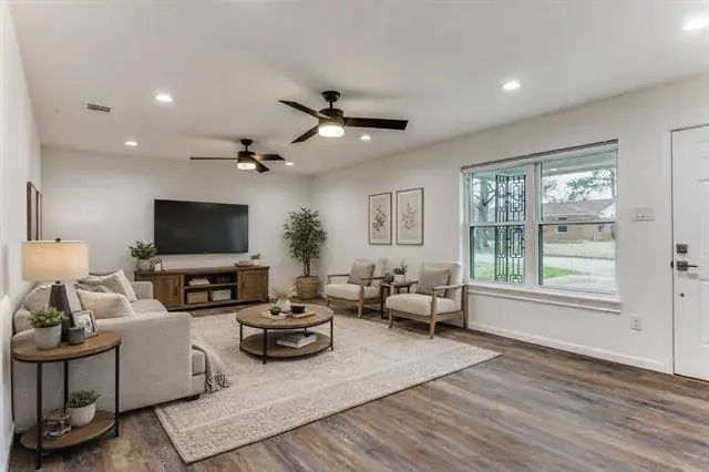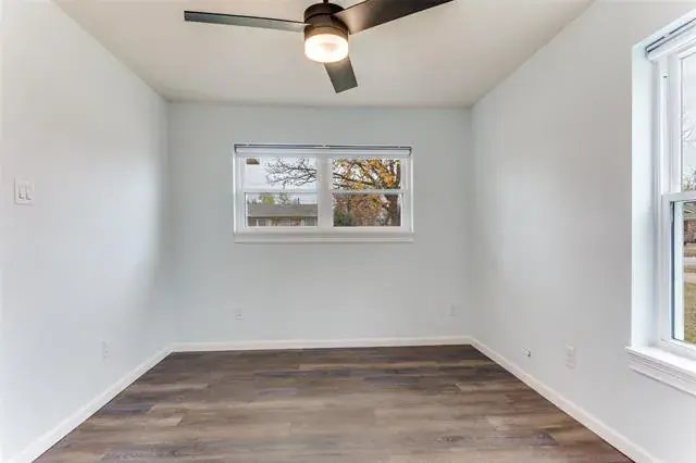 So much value with so many updates! Solid brick home on a spacious lot. Whole interior freshly painted (2025), luxury vinyl flooring (2025), ceiling fans and can lighting (2025), class 4 roof (2025), HVAC and water heater (2025), completely updated kitchen and both bathrooms (2025), Windows and electrical wiring replaced (2018-2019). All work was permitted. Spacious living room opens to dining area and kitchen. Master bedroom is split from secondary bedrooms and features an adjoining bathroom, walk-in closet, a fireplace and French doors leading to the backyard. A covered patio overlooks a spacious fenced backyard. There is no survey available; buyer will need to purchase one if needed.
