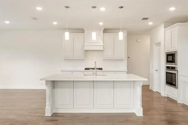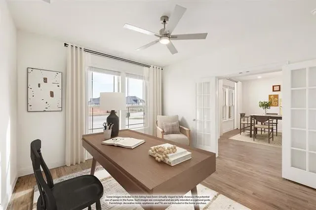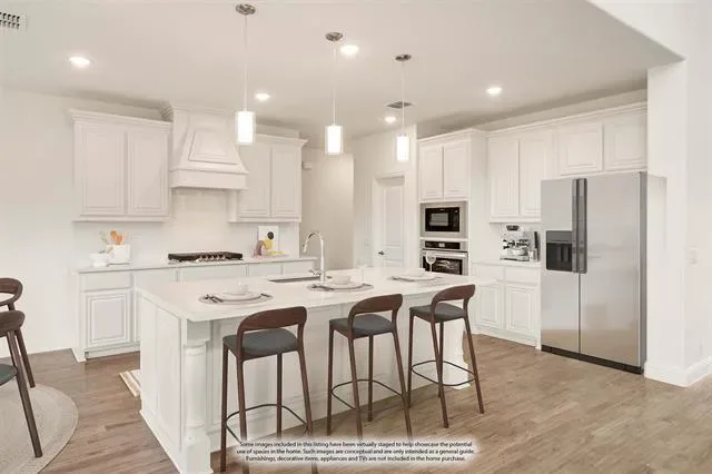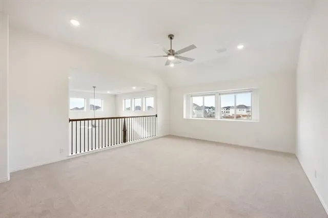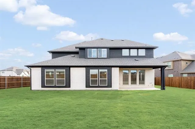 NEW! NEVER LIVED IN. Ready Now. This Spring Cress II by Bloomfield Homes delivers big presence and smart design on an oversized lot in Wildflower Ranch. From the street, the upgraded white brick and stone exterior, fully bricked front porch, onyx-stained garage door, and upgraded 8′ front door immediately set this home apart. Once indoors, site-stained wood floors lead you through the main living spaces and pair seamlessly with upgraded tile in every bathroom for a cohesive, elevated finish throughout. The layout flows comfortably from the Family Room into the Dining space and Deluxe Kitchen, where practical upgrades shine with pot and pan drawers, a dedicated oven and microwave cabinet, a cooktop below a wood vent hood, and a large central island to gather around. Anchoring the space nearby is a dramatic floor-to-ceiling, direct-vent fireplace made of chopped silvermist stone. The first floor is thoughtfully arranged with the Primary Suite tucked away for privacy, a secondary bedroom and full bath featuring a standing shower, and a private Study enclosed with glass French doors that works perfectly for a home office or flex space. Upstairs opens to a spacious Game Room framed by rod-iron railing along the staircase and family overlook, creating a connected yet open feel. A dedicated Media Room adds another layer of flexibility, while 3 additional bedrooms (all with walk-in closets) and a secondary bath with a standing shower complete the second level. Finishing touches include added LED lighting in both the Dining Room and Game Room, rain gutters, a gas drop at the rear patio, and hot and cold hose bibs with a drain at the back of the home, all reinforcing the level of care put into this build. Call or visit the Bloomfield Homes model at Wildflower Ranch in Fort Worth to see this Spring Cress II in person and explore the community!