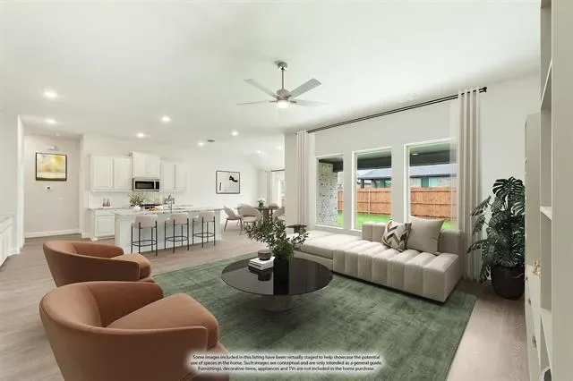 NEW! NEVER LIVED IN. Under Construction with Completion Expected June 2026. Located in the Wildflower Ranch community, this Rockcress by Bloomfield Homes offers 4 bedrooms, 3 baths, and a 2-car garage with J-swing driveway in a one-story layout. A charming covered porch and upgraded brick exterior create an inviting first impression. 8-foot interior doors throughout the home help the space feel larger and more open. The family room sits at the center of the home. It connects easily to the breakfast area and kitchen, keeping the main living spaces open. The open layout connects the family room to the breakfast area and kitchen, creating a comfortable flow that works well for both daily living and hosting. In the Deluxe Kitchen, you’ll find built-in stainless steel appliances, a 5-burner cooktop, double oven, and generous prep space. The layout keeps everything within easy reach while maintaining an open connection to the main living areas. The primary suite is privately positioned and includes a spacious bath with a drop-in deck-mount tub, separate shower, dual sinks, and a walk-in closet. 3 additional bedrooms and 2 full baths are arranged to provide flexibility for guests, hobbies, or a home office. A covered patio in the backyard adds a shaded space for outdoor living. Wildflower Ranch residents enjoy access to unique resort-style amenities including a lazy river with open-air pavilion, scenic trails along Harriet Creek, playgrounds, a resort-style pool, clubhouse, dog park, and event lawn designed for community gatherings. Visit Bloomfield Homes at Wildflower Ranch to learn more about the Rockcress and explore everything this community has to offer!