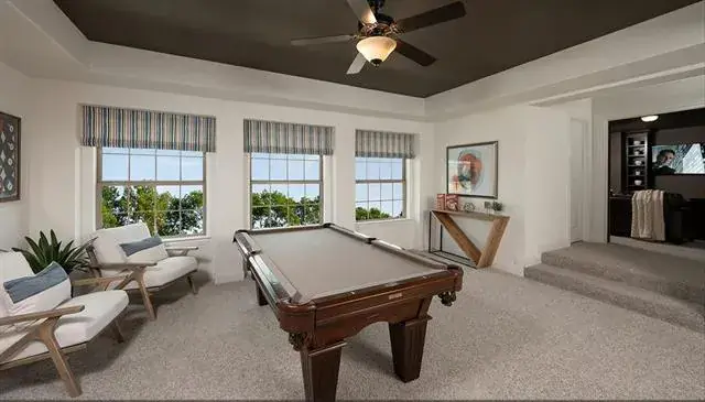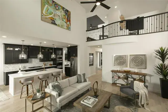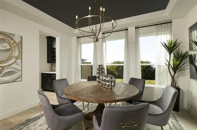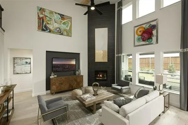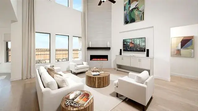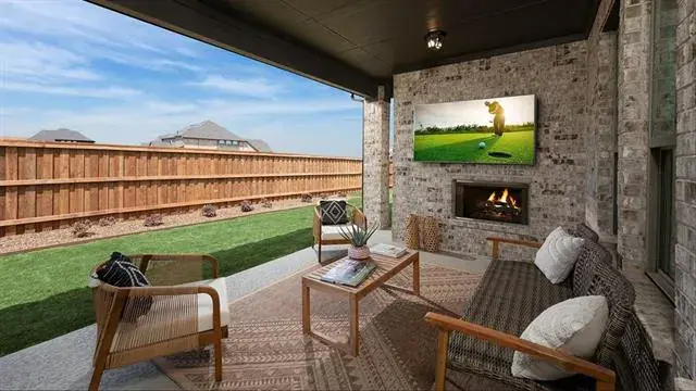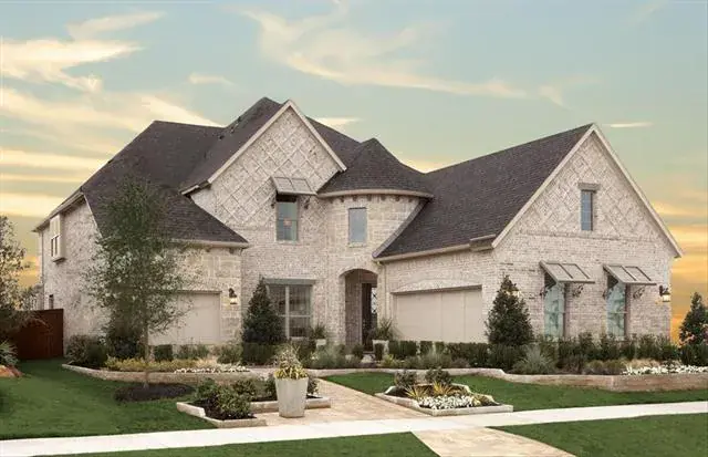 MLS# 21111046 – Built by Coventry Homes – Feb 28 2026 completion! ~ This stunning new construction single-family residence, set to be completed by February 2026, boasts an impressive 4,066 square feet of thoughtfully designed living space. Featuring 6 spacious bedrooms, all serving as primary suites, and 5 luxurious full bathrooms. The open floor plan enhances the flow between the two living areas and two dining spaces, perfect for entertaining. The chef-inspired eat-in kitchen showcases a center island, decorative lighting, and smart home technology, while the living room is highlighted by a decorative gas fireplace. Enjoy outdoor living on the covered patio of your private yard, complemented by a sprinkler system and landscaping. Additional amenities include a 3-car garage, energy-efficient heating and cooling systems, and wired sound throughout. Located in the desirable Wildflower Ranch subdivision within the Northwest ISD, this home is a perfect blend of comfort and modern living.