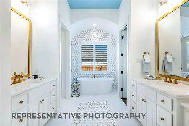 Stunning Highland Homes MODEL floor plan offering exceptional luxury, space, & thoughtful design throughout! This impressive two story home welcomes you through grand double entry doors into a dramatic foyer with soaring ceilings & an elegant sweeping staircase. The dream kitchen is designed for both entertaining & everyday living, featuring abundant cabinetry, a large rounded center island, & separate peninsula with sink for added prep space. The kitchen flows seamlessly into the family room, where breathtaking vaulted cathedral ceilings span across both areas, creating an expansive & inviting atmosphere. A large wall of sliding glass doors opens to an oversized covered patio, blending indoor & outdoor living beautifully. Host memorable gatherings in the oversized dining room & spacious breakfast area. A private media room on the main floor is perfect for movie nights or game day. Luxurious primary suite offers vaulted ceilings, a relaxing sitting area, & a spa-inspired bathroom complete with a freestanding soaking tub, oversized walk-in shower, double vanities, & dedicated sit down vanity. For added convenience, the laundry room connects directly to the primary bathroom. Upstairs features a large game room with wet bar area along with three generously sized bedrooms, all with ensuite bathrooms.