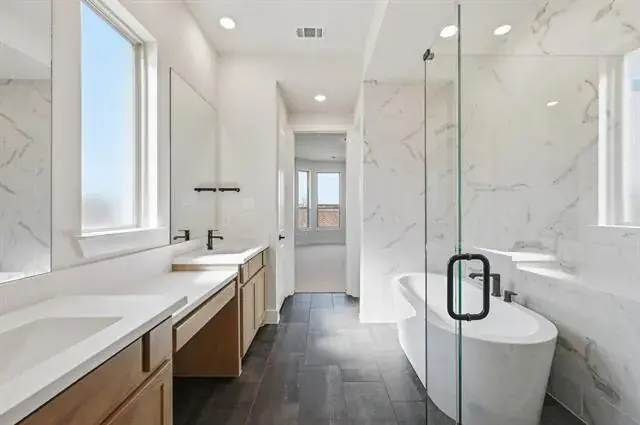 Ask about builder promotions on available homes. Highland Homes, an A+ Texas home builder known for quality materials and workmanship and the best customer service. This home is in the sought after Master-Planned Community of Wildflower Ranch. WFR features a lazy river with snack shack, Resort style pool with clubhouse and onsite necessities store, multiple playgrounds, miles of walking trails, dog park and onsite elementary school. This award winning, Highland Homes Cambridge floorplan features customized transitional kitchen with waterfall island, open concept family and dining rooms with two story ceilings. Walking trail behind this home with open green space on one side. Only one neighbor! Upgrades throughout include wood flooring, specialty tiles, patterned carpet, but so many more they cannot all be listed here.