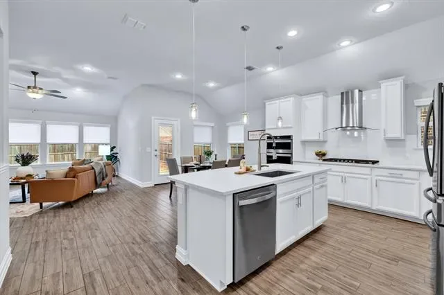 Welcome to this beautifully maintained, move-in ready home in Haslet, TX, located in the highly sought-after Northwest ISD! Built in 2020, this 3-bedroom, 2-bath home with a dedicated office offers a functional open-concept layout perfect for everyday living and entertaining. Rare opportunity: This home features a VA assumable loan with an incredibly low 2.875% interest rate—an exceptional advantage for qualified buyers looking to secure a lower monthly payment in today’s market. The spacious kitchen features abundant cabinetry, generous counter space, and a large island that flows seamlessly into the living and dining areas. A private office provides flexibility for working from home or additional living space. Recent updates include new carpet, baseboards, fresh paint, and upgraded window treatments throughout, including blackout automatic shades in the primary suite. Enjoy a spacious backyard with room to relax or entertain, plus access to community amenities including a resort-style pool. Conveniently located near shopping, dining, and major commuting routes, this home offers the perfect blend of comfort and convenience in the heart of DFW. Whether you’re a first-time homebuyer, growing family, or savvy buyer looking to take advantage of a low-interest assumable loan, this home checks all the boxes.