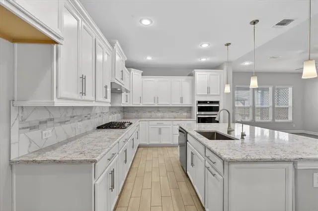 This stunning 4-bedroom, 3.5-bath home truly shows like a model and is ready for you to move right in. At the heart of the home is a massive kitchen designed to impress, featuring an oversized island with abundant seating, stainless steel appliances, gas cooktop and oven, and a spacious pantry. The kitchen seamlessly opens to a warm and inviting living room perfect for gatherings and everyday living. The main floor offers incredible functionality with two dedicated office spaces (including one with a built-in desk just off the kitchen), a formal dining room, laundry room, and a convenient mudroom. Retreat to the bright and spacious primary suite, your own private oasis, complete with a large walk-in closet, dual sinks, and an oversized shower creating a truly relaxing atmosphere.