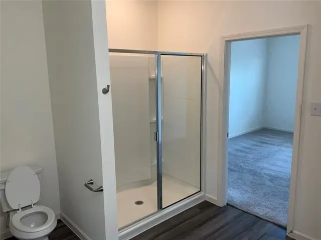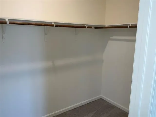 The private primary suite offers a relaxing retreat with a spacious walk-in closet and a walk-in shower.