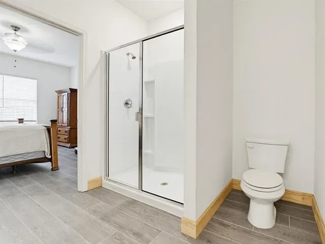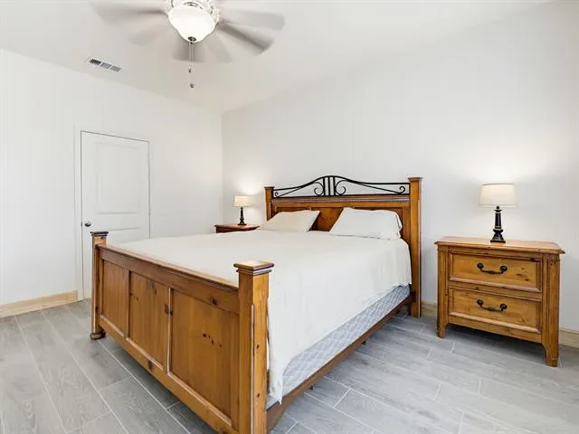 The spacious primary suite offers a relaxing retreat with a well-appointed bath and generous closet. Split bedrooms provide added privacy.