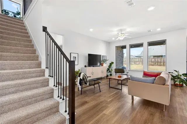 Natural light pours through large windows, highlighting the home’s clean lines and contemporary style. The private primary suite offers a relaxing retreat, while the additional bedrooms provide generous space for family or guests.