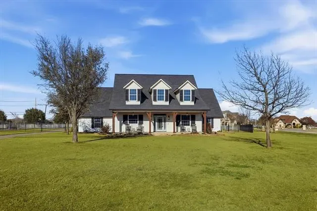 Tucked away on a peaceful cul-de-sac in sought-after Willow Springs Ranch, this exceptional Haslet estate offers the perfect blend of country charm and modern luxury! Situated on a sprawling 1.27-acre lot, this executive custom home delivers wide-open spaces and endless possibilities for your dream lifestyle. From the moment you arrive, the expansive front porch sets the tone with timeless Southern charm and designer touches that seamlessly blend classic elegance with modern comfort. Inside, stunning REAL hardwood floors add warmth and character, while the thoughtfully designed layout offers both upscale entertaining spaces and relaxed everyday living. The heart of the home is the island kitchen, perfectly positioned to flow into the living and dining areas for effortless hosting. Oversized secondary bedrooms and a split-bedroom design ensure privacy for all, while the flexible floor plan provides multi-generational living options ideal for aging parents or boomerang kids. Upstairs, enjoy a spacious game room, with quaint dormer window space where your kids can read or enjoy a sunny craft space of their own! Private suite upstairs with adjoining bath is the ultimate retreat for teens or guests. Step outside to a Texas-sized covered patio made for al fresco dining and entertaining! The HUGE backyard is a blank slate ready for your dream pool, workshop, RV or boat parking, or hobby space to come to life! Dedicated pet space with secure dog run and automatic dog waterer installed so man''s best friend lives like a king in this castle too! A gated entry, oversized driveway and large 3-car garage provide ample parking and storage. Enjoy country living with city conveniences with shopping, dining, and entertainment close! No HOA! Private well= No Water bills! Acclaimed NW ISD! Experience the elevated lifestyle you’ve been dreaming of! This exceptional home is ready to welcome you and homes offering this level of space, flexibility, and functionality are rare – call today!