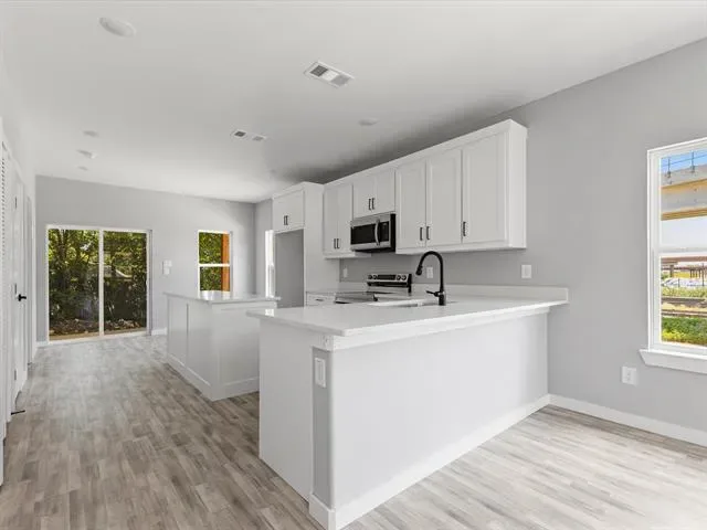 Seller is offering $5,000 toward Closing Costs. Come see 1609 E Bluff St, where modern design meets Fort Worth charm. Built in 2025 and set on a prominent corner lot in the Historic Southside, this 3-bedroom, 2-bath stunner stands out with 1,424 sq ft of thoughtful, contemporary living space. From the moment you walk in, cool grey and white tones set the tone. White quartz-style countertops, black matte fixtures, stainless steel appliances, and bright white cabinets give the kitchen and baths a crisp, upscale feel. The open layout flows effortlessly, perfect for laid-back evenings or lively get-togethers.