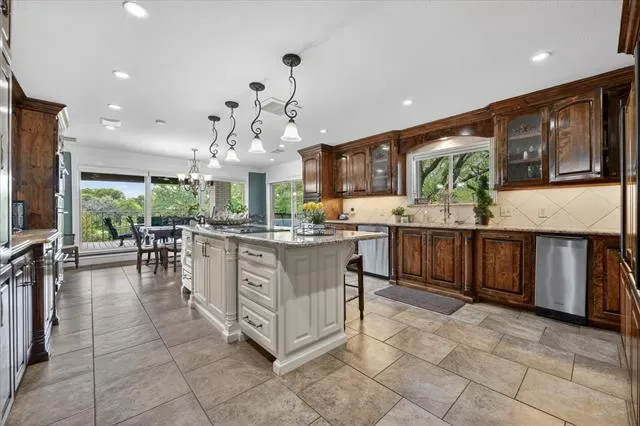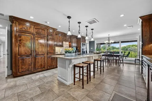 Stunning custom estate situated on rare greenbelt property—formerly the Woodhaven Country Club #2 fairway—offering expansive views and a private, resort-style experiential living AT THIS PRICE! This impressive 3-story home is designed with multiple entertaining and everyday living spaces, featuring soaring ceilings, large windows to view the green space in most rooms, and timeless architectural details throughout. The updated chef’s kitchen includes dual refrigerators, multiple prep areas, premium appliances, and custom cabinetry and pantry, opening to spacious living and dining areas ideal for hosting. Featuring two primary suites, the owner''s private primary suite offers balcony access, a spa-inspired bath, and generous custom closet space. Laundry chute for all three floors that was previously a dumbwaiter. Outdoor living is exceptional with multiple balconies and patio areas, including the added Treehouse deck, all featuring new composite decking, a refinished pool with stamped concrete and fossil coping, and a fully equipped outdoor kitchen—perfect for enjoying the peaceful greenbelt backdrop. RECENT UPDATES include a premium DaVinci composite roof, updated HVAC systems, newer water heaters, enhanced landscape lighting surrounding the property, interior and exterior painting, pool improvements and various other interior improvements that are too many to mention here. See Luxury Features and Updates. FLEXIBLE living spaces include a lower level Great Room that is perfect for the Game Room with pool table that conveys, full wet bar area, huge utility room. Potential Guest quarters with SECOND PRIMARY SUITE area and abundant storage areas. A rare opportunity to own a distinctive property with space, privacy, and scenic surroundings in Fort Worth. Quick access to major freeways to Dallas and Fort Worth, entertainment and retail. Only qualified buyers for showings and must show proof of funds prior to scheduling appt.