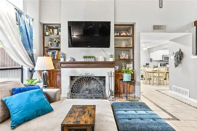 Stylish living just minutes from downtown meets everyday suburban convenience in this updated townhome in Woodhaven Country Club Estates! With quick access to I-30 and 820, this well-kept community offers mature trees, a sparkling diving pool, and low-maintenance living. Inside, soaring ceilings and open living spaces create a welcoming atmosphere. The spacious family room with wood-burning fireplace and wet bar-in-waiting is perfect for entertaining, while the kitchen offers modern updates, ample storage, and a breakfast nook that opens to a private patio—ideal for morning coffee or evening get-togethers. Upstairs, the oversized primary suite features an en-suite Hollywood bath and generous closet space. A second bed-and-bath plus a versatile loft and enclosed balcony—perfect for an office, workout area, or reading nook—add flexibility to the floor plan. With a 2-car garage, recent updates including new windows and door. and HOA covering water, exterior upkeep, and community pool, this home is move-in ready and designed for easy living. Come see it today!