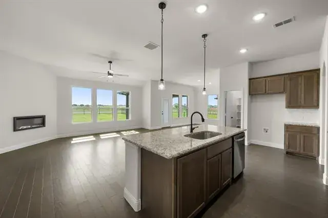 MLS# 21137378 – Built by Risewell Homes – Ready Now! ~ This inviting single-story home offers a well-balanced layout with 3 bedrooms, 2 bathrooms, and a private study, designed for both comfort and everyday functionality. The open-concept family room connects seamlessly to the kitchen and breakfast nook, creating a bright and welcoming central living space ideal for gathering and entertaining. The kitchen features ample counter space, a center island, and a walk-in pantry for added convenience. The private primary suite is tucked away and includes a spacious bathroom with dual sinks, a soaking tub, separate shower, and a large walk-in closet. Two additional bedrooms are thoughtfully placed to provide flexibility for guests or family, while the dedicated study near the entry offers a quiet space for working or learning from home. With a two-car garage, optional covered patio, and smart storage throughout, this thoughtfully designed home delivers comfort, flow, and livability for life in Granbury.
