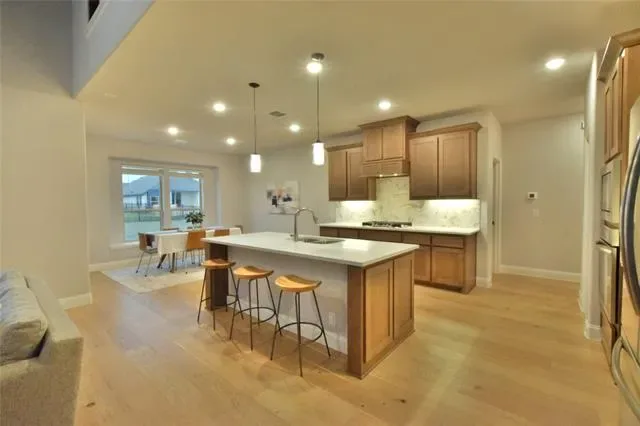Beautiful better than new home in Abe’s Landing in Granbury offering 5 bedrooms, 4 full baths, and 3,518 sq ft of thoughtfully designed living space. Only one year old, this Bloomfield Spring Cress floorplan shows even better than a model home. The open concept layout features a vaulted living area with an impressive loft overlooking the main space, all complemented by designer finishes throughout. The spacious primary suite offers a large bedroom and a luxurious bath with a separate tub and walk-in shower. Situated on a 0.21-acre lot, the fully fenced backyard with wrought iron fencing is landscaped and includes a sprinkler system. Enjoy both a covered front porch and back patio perfect for relaxing or entertaining. Has a transferable mechanical and structural warranty. Seller''s work is relocating, creating a great opportunity to own a like new home without the wait. don’t miss this one!!!