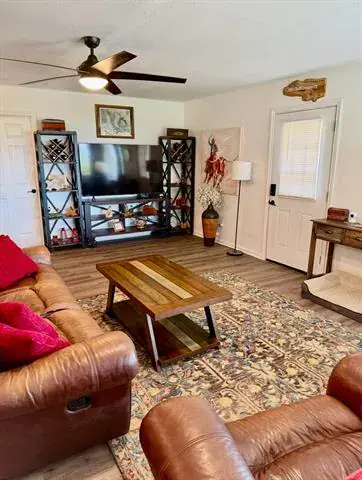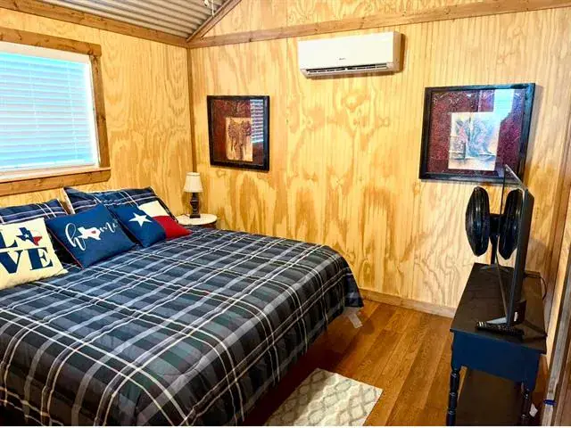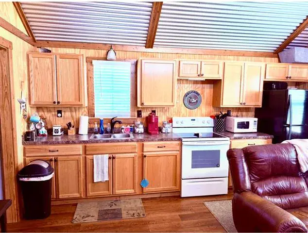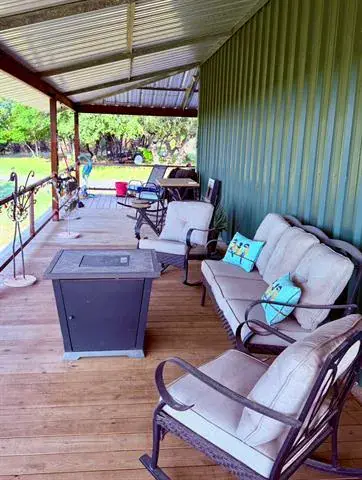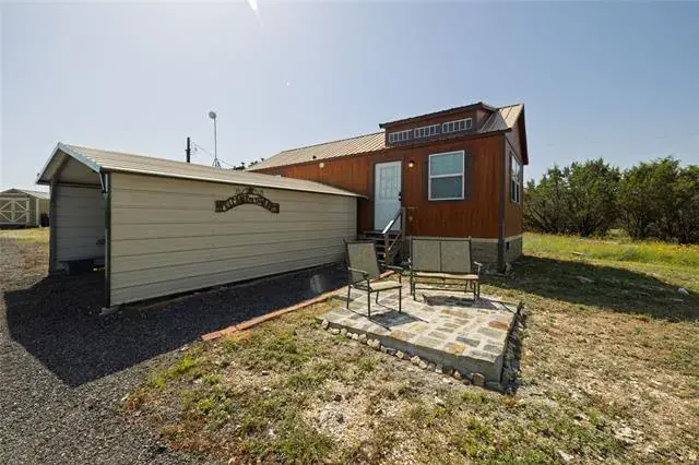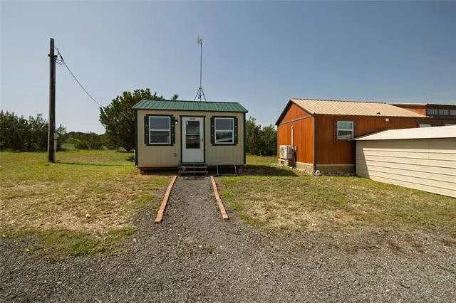 Ready to escape the hustle &' bustle? At the end of a country caliche road you’ll find a Texas Ranch Retreat with Renovated Barndo, Guest Tiny Home &' Endless Views —just under 23 unrestricted acres of peace, privacy, &' panoramic views! Anchoring the property is a beautifully renovated barndominium that blends rustic charm with modern upgrades, featuring granite countertops, new tile backsplash, LVP floors, &' newer appliances. The massive walk-in closet &' abundance of storage provide room to breathe, with space to easily add a second bath. All-new Pella windows, new vanity &' shower, &' a spray-foam insulated attic with aluminum pull-down ladder ensure comfort &' efficiency year-round. Step outside to a large wooden deck wrapped in Austin limestone—perfect for enjoying the legendary Texas sunsets. New private road &' electric gate recently added to provide secure &' convenient access from the main road. For those looking for a seamless move, the barndominium is available furnished.