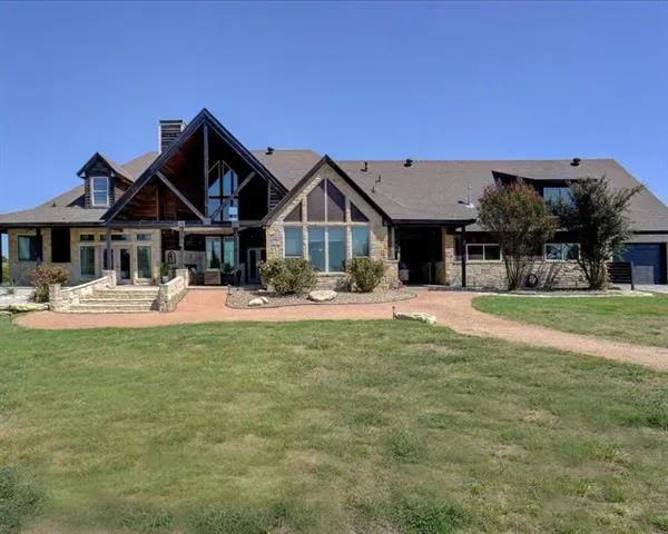 Welcome to this private, gated-entry home set on over 13 acres with approximately 118 feet of main-body lakefront. The home features a wrap-around porch, a large foyer with hardwood floors, a spacious living area with high windows, and a 3-way gas wood combo stone fireplace. The open-concept kitchen includes a double oven, gas stove, and walk-in pantry. The primary bedroom has its own fireplace, sitting area, and French doors opening to the back porch. Upstairs, is bedroom 4 offering views of the surrounding landscape from above. New container home with full amenities provides treed privacy for guests. Additional features include a large flexible room above garage, seasonal creek, and lake views.