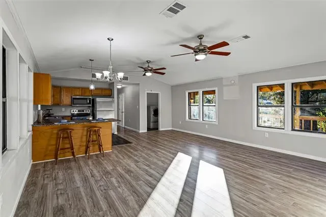 Recently updated single wide manufactured home with views of Lake Granbury from your front porch! A short 5 minute walk to the Lake from your driveway! This home also has a small add on and is located on an almost quarter acre corner lot! Welcome home to this wonderfully updated home conveniently located between Granbury and Weatherford. Built in 1980 but recently taken all the way down to the studs and completely remodeled! 1310 square feet featuring 3 full bedrooms, 2 full baths, large and open living room, very functional kitchen, breakfast area just off the kitchen, a separate utility room with washer and dryer included, and more! An incredible 21 foot wide and 15 foot long covered walk up front porch AND a large covered back porch as well. 2 car metal carport AND a 1 car enclosed detached garage! Inside you will find wood look laminate flooring, new carpet in the bedrooms, granite countertops in the kitchen that also includes full appliances. Refrigerator, cooktop stove, dishwasher, and built in microwave. Ceiling fans in all rooms and walk in closets in the bedrooms. Primary bedroom is separate from the guest bedrooms for the ultimate in privacy. Central heat and AC for the ultimate in efficiency. The outside of this home has so much to offer. Large mature trees, grass, and all located on a large corner lot. Chain link fenced back yard is perfect for the kids and pets. This home is located in the community of Arrowhead Shores. Arrowhead Shores offers Lake Granbury access with a private boat ramp, clubhouse, community pool, and community park. This home has a lot to offer its new owner with beautiful updates, ample parking, and priced to sell!