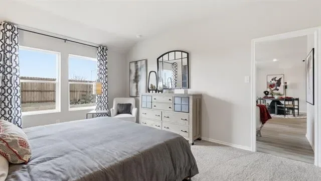 Beautiful new D.R. Horton home in the Bella Vista community located in Granbury and Granbury ISD! The single-story Texas Cali Floorplan, Elevation B, with an estimated Spring completion, offers 4 bedrooms, 2 bathrooms, and a 2-car garage with a spacious open-concept layout designed for modern living. The family room, cozy nook, and contemporary kitchen blend together seamlessly, creating an inviting central gathering space ideal for both everyday comfort and entertaining. The chef-inspired kitchen features quartz countertops, 36” upper cabinets with hardware, stainless steel appliances, an electric range, stainless steel sink, center island, and a walk-in pantry for ample storage. The private primary suite includes an en-suite bath with dual quartz vanities, a 5-foot oversized shower, and a walk-in closet located directly off the bathroom. Three secondary bedrooms and a full bathroom with a quartz vanity top offer flexibility for family, guests, or a home office. Luxury vinyl plank flooring is installed throughout all main living areas and wet zones for enhanced durability and easy maintenance. Built with energy-efficient construction and equipped with America’s Smart Home Technology, this home also includes a tank water heater for added convenience. Exterior features include a landscape package, full sprinkler system with rain sensor, privacy fencing. Bella Vista in Granbury is more than a place to live—it’s a place to call home.